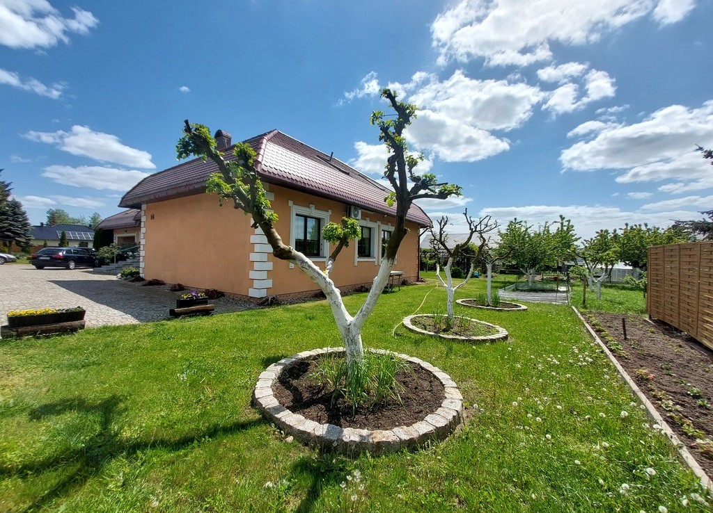 STANDARD: Nieruchomość wybudowana w 2000 roku, okna i drzwi zewnętrzne z drewna mahoniowego, na podłodze w pokojach panele, w kuchni i łazienkach glazura. W pomieszczeniach od strony południowej zamontowana klimatyzacja, obiekt zaopatrzony w panele fotowoltaiczne.