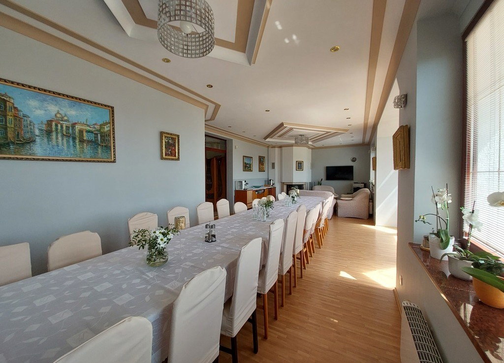 UKŁAD: Powierzchnia całkowita nieruchomości to 580 m2, na poziomie PARTERU mieści się obszerny salon z kominkiem i jadalnią, z wyjściem na duży taras od strony południowej, funkcjonalna kuchnia z przejściem do kuchni letniej oraz trzystanowiskowy garaż. Z holu przejście do trzech sypialni oraz obszernej łazienki z wanną.