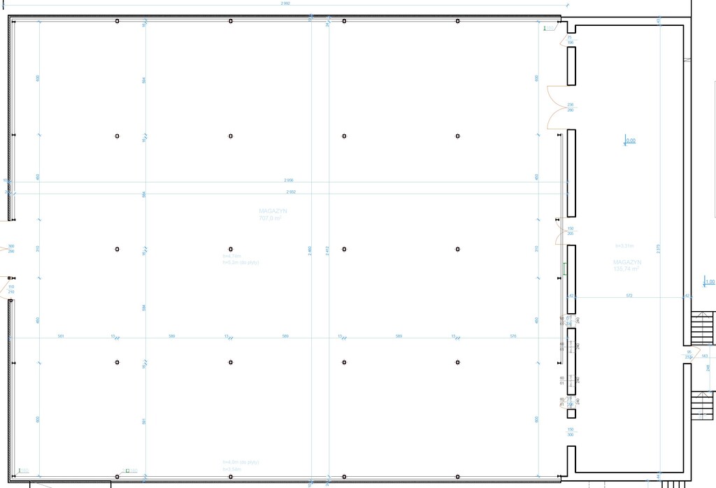 Wysokość hali 3,5m – 4,9m