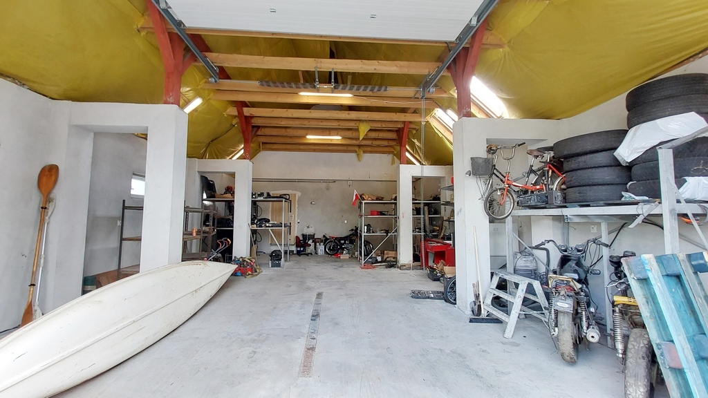 Budynek z 2015 roku, ocieplony styropianem, dach docieplony wełna,  posadowiony na działce o pow. 1500 m2, w pełni ogrodzony, z dwoma bramami wjazdowymi, utwardzonym terenem oraz dodatkowym miejscem magazynowym w postaci hali namiotowej o pow. 250 m2.