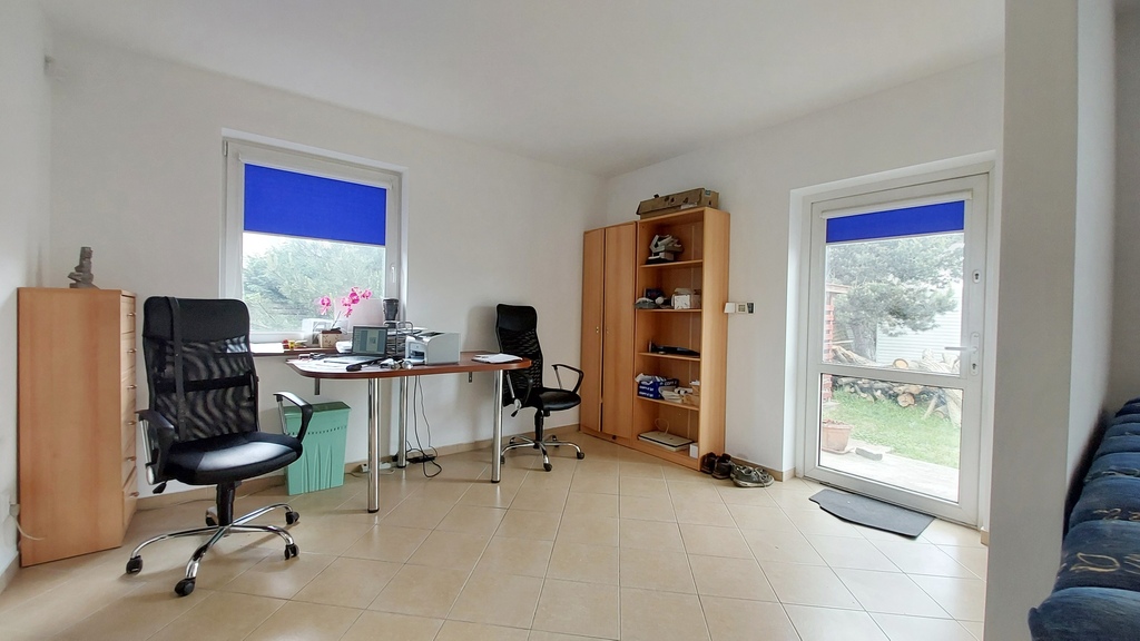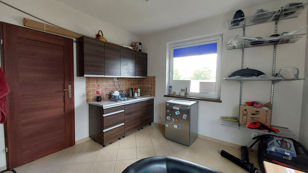 Parter o pow. 144 m2 : przekształcony na część biurową z czego 86 m2 zajmuje część magazynowo – warsztatowa z bramą 4m x 4m