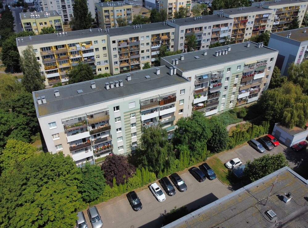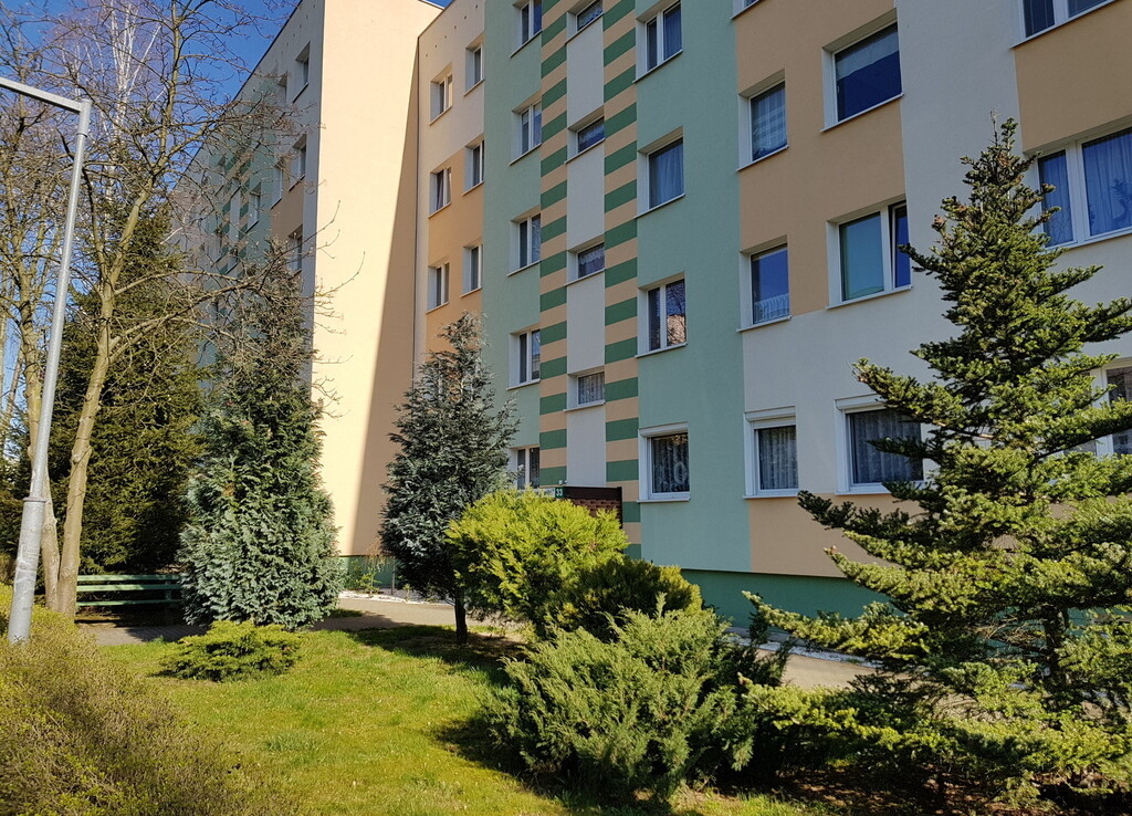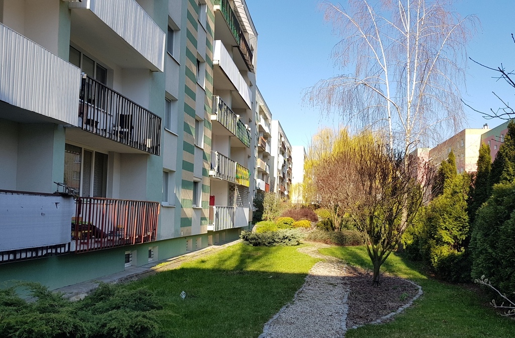 BUDYNEK z wielkiej płyty z 1979 roku, zarządzany przez wspólnotę, po termomodernizacji i po wymianie pionów wod-kan. Zadbana i czysta klatka schodowa, zielony i zagospodarowany teren wokół budynku.