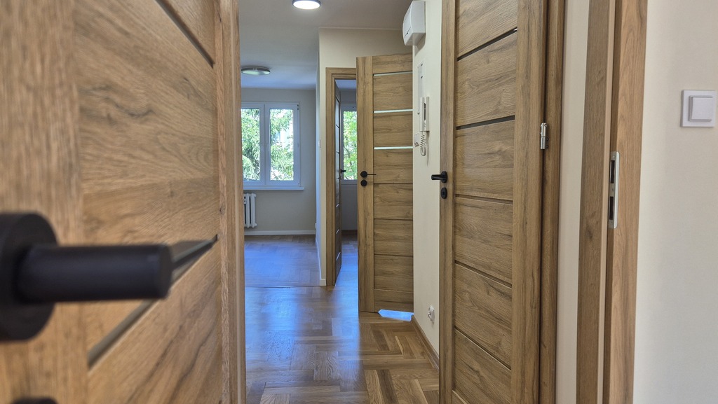 STANDARD MIESZKANIA: nowe trzyszybowe okna PCV (Nexbau) z nawiewnikami, wychodzące na południe i północ, we wszystkich pokojach i przedpokoju na podłogach piękny nowy parkiet dębowy, nowa instalacja elektryczna z zabezpieczeniami różnicowo-prądowymi, w łazience i wc kilkuletnie płytki ceramiczne i armatura, w kuchni przygotowane podłączenie pod płytę elektryczną a na posadzce wodoodporne panele PCV w kolorze dębu, ściany malowane farbą emulsyjną, grzejniki żeliwne, nowe drzwi zewnętrzne (lite drewno) i wewnętrzne (PORTA). Centralne ogrzewanie i ciepła woda z sieci miejskiej. Mieszkanie ciepłe, środkowe. Ciche i dobre sąsiedztwo.