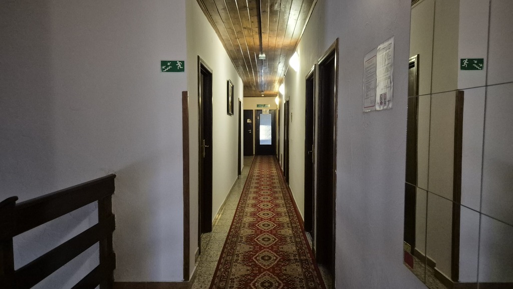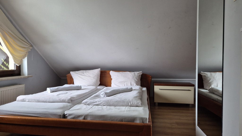Na parterze restauracja z salą o powierzchni 112 m2 i pomieszczeniami pomocniczymi. Na piętrze 11 pokoi z łazienkami (1,2,3,4 -osobowe).