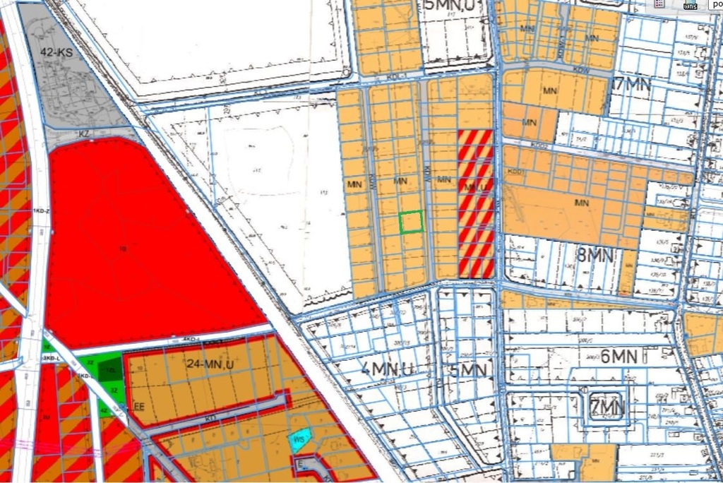 PRZEZNACZENIE W PLANIE: Teren objęty Miejscowym Planem Zagospodarowania Przestrzennego, co oznacza, że na warunkach zapisanych w tym planie wystarczy sporządzić projekt budowlany i wystąpić o wydanie pozwolenia na budowę. W planie miejscowym działka leży na terenie oznaczonym symbolem MN – przeznaczonym pod zabudowę mieszkaniową jednorodzinną z dopuszczeniem zabudowy bliźniaczej, gdzie wysokość budynków ustalono na 13m do kalenicy, dachy o kącie 25-45″, 50% terenu biologicznie czynnego. Plan dopuszcza też prowadzenie na terenie posesji działalności nieuciążliwej, realizację budynków towarzyszących parterowych w odległości 1,5m od granicy, lokalizację basenów kąpielowych i ogrodów zimowych ogrodzeń ażurowych do 1,6m.