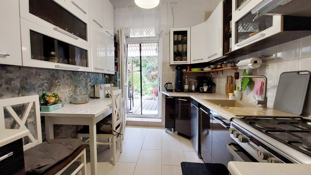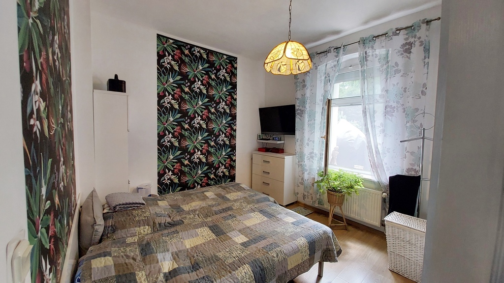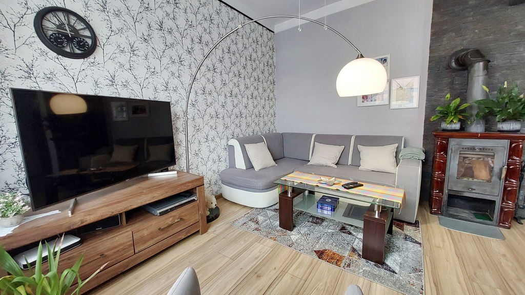 Mieszkanie w 2021 roku przeszło generalny remont z wymianą instalacji wod-kan i CO oraz elektrycznej (kuchnia, łazienka), połączeniem pokoi, zamontowaniem kominka, odświeżeniem ścian. Na podłodze w pokojach panele, reszta pomieszczeń w płytkach, ściany gładkie, malowane, częściowo w ozdobnej tapecie. Mieszkanie ogrzewane własnym kotłem gazowym, który mieści się w piwnicy. Budynek i teren wokół bardzo zadbany, w 2022 roku przeszedł generalny remont, zarówno na zewnątrz jaki i wewnątrz, łącznie z wymianą drzwi wejściowych. Za budynkiem kameralny ogród, gdzie każdy z mieszkańców posiada swoją strefę wypoczynku oraz szopkę na sprzęt ogrodowy. Budynek zarządzany przez wspólnotę, znajdują się w nim jedynie 4 mieszkania.