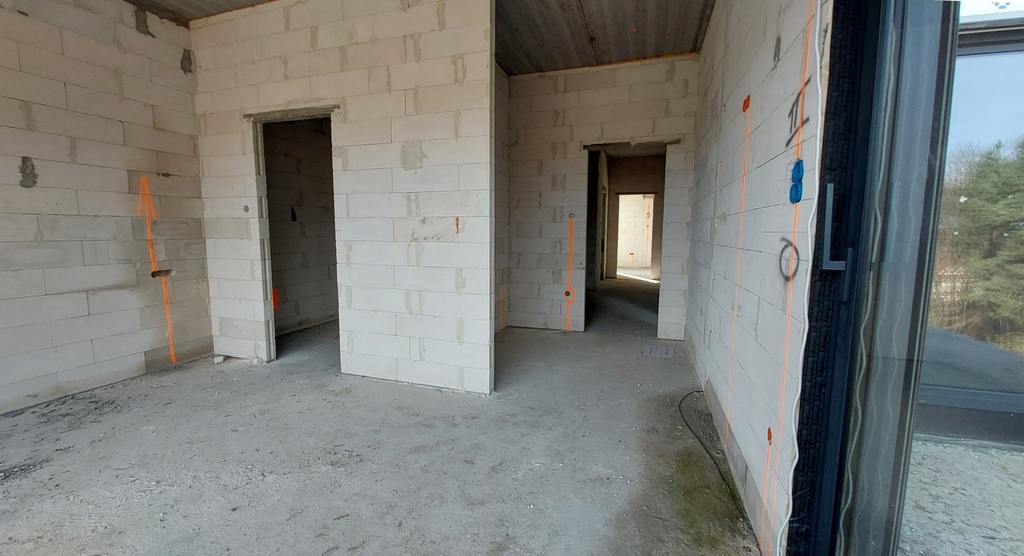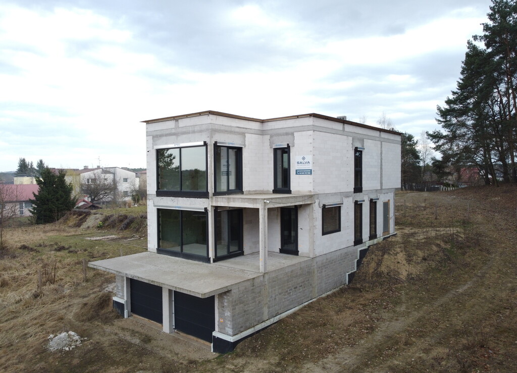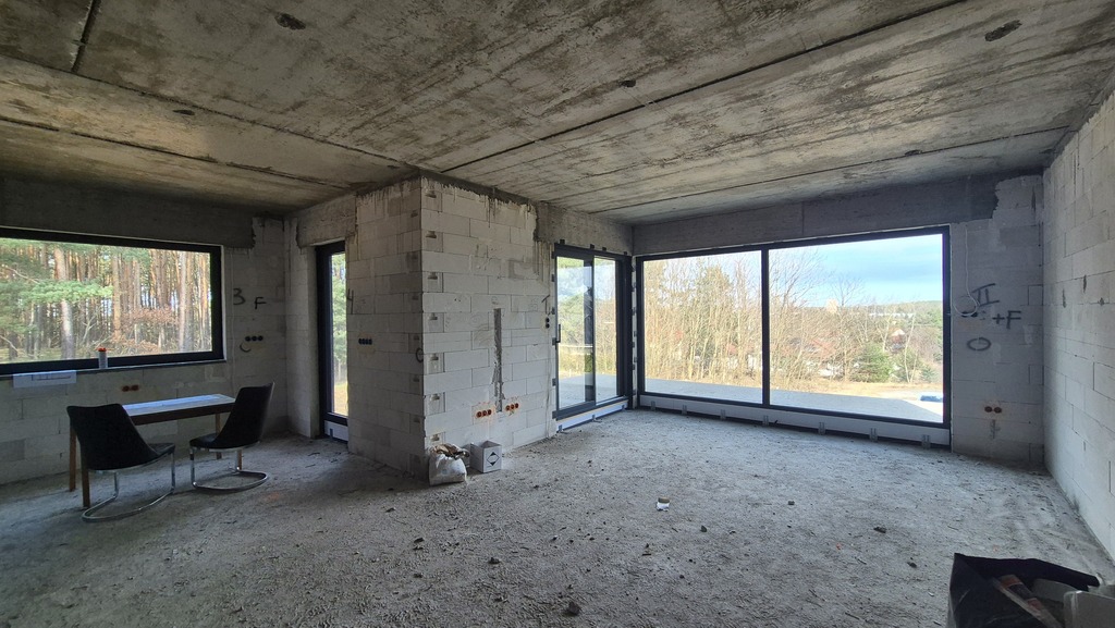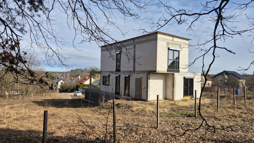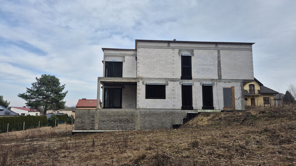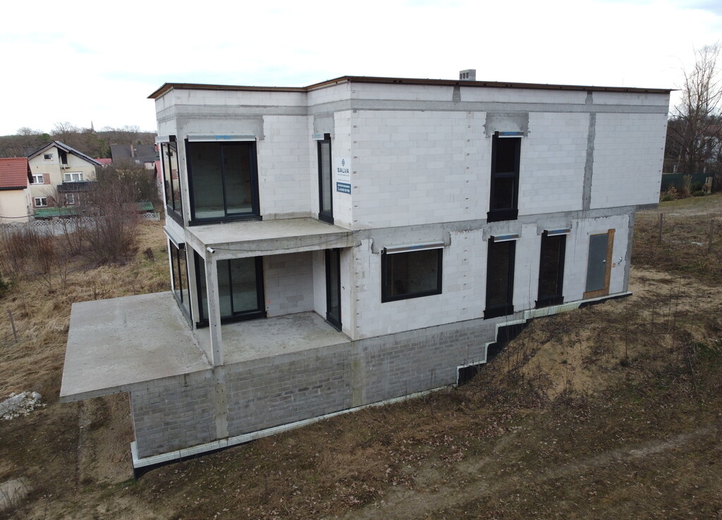 Niezwykle miejsce, niezwykły dom. Ogromna działka na wzgórzu przy ścianie lasu, indywidualny, nowoczesny projekt, solidnie wybudowany stan surowy zamknięty z przemyślnymi rozwiązaniami, a całości dopełniają ogromne trójszybowe panoramiczne okna z pięknym widokiem na okolicę.