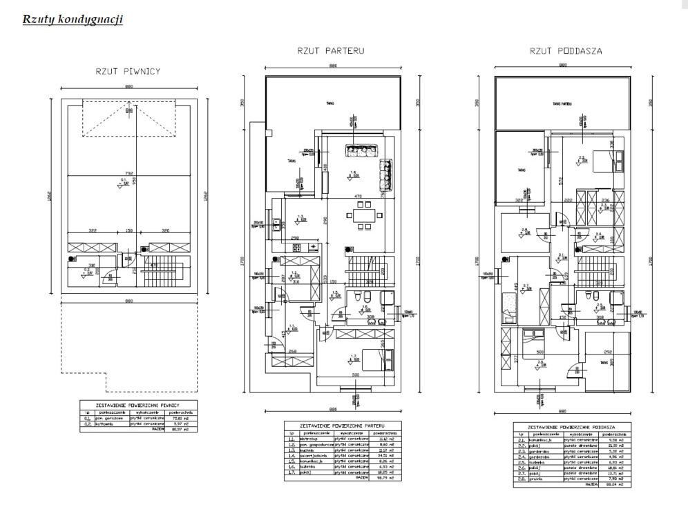 PIĘTRO (88 m2, wysokość 3,3m): 3 sypialnie, w tym dwie z wyjściem na taras, 2 garderoby, łazienka oraz pralnia.
