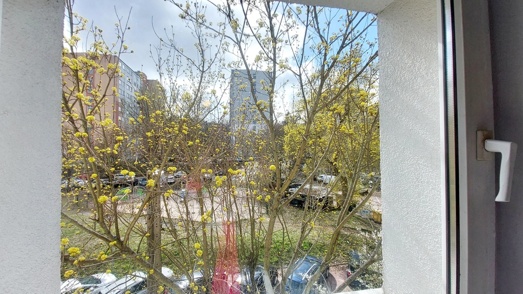 Okna wychodzą na południe, a mieszkanie jest środkowe – ciepłe i słoneczne, z dużą ilością zieleni za oknem, do lasu 4 min.